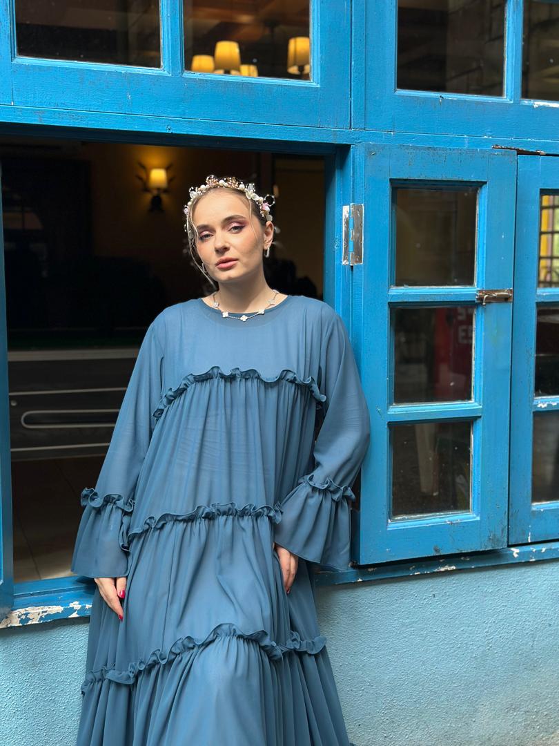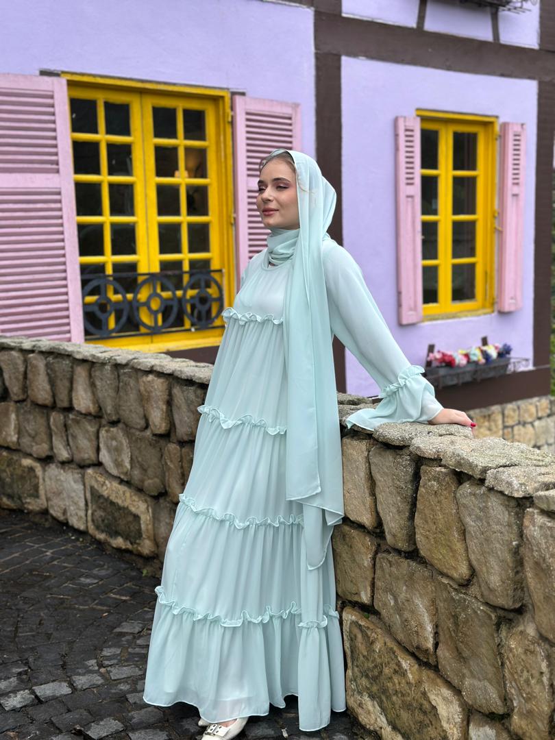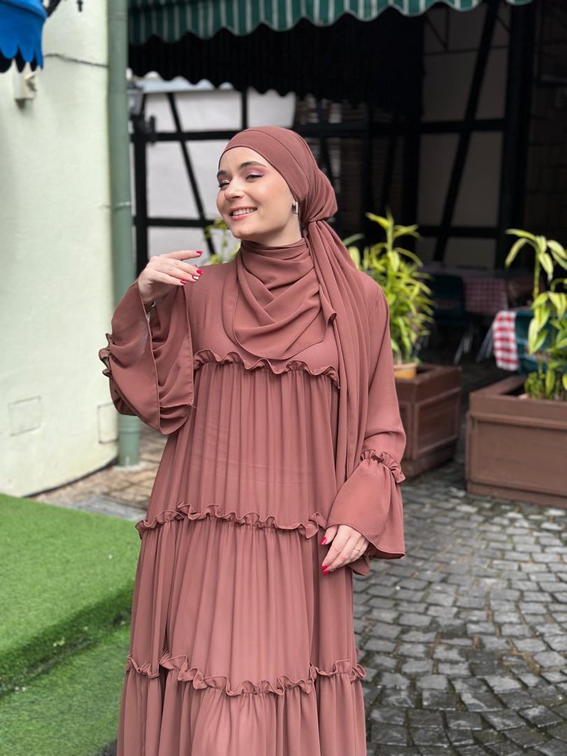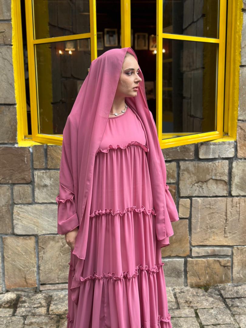 Matching mom & kids abaya ruffle set, comes with shawl