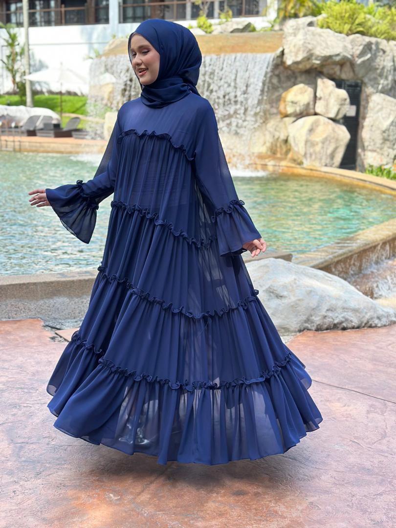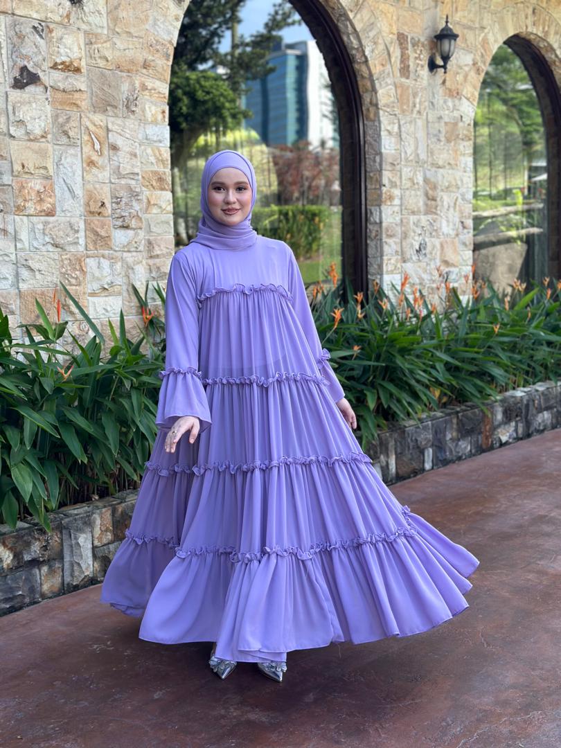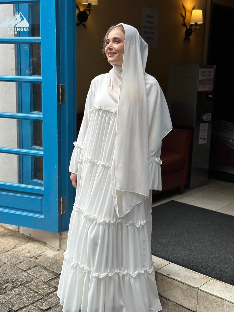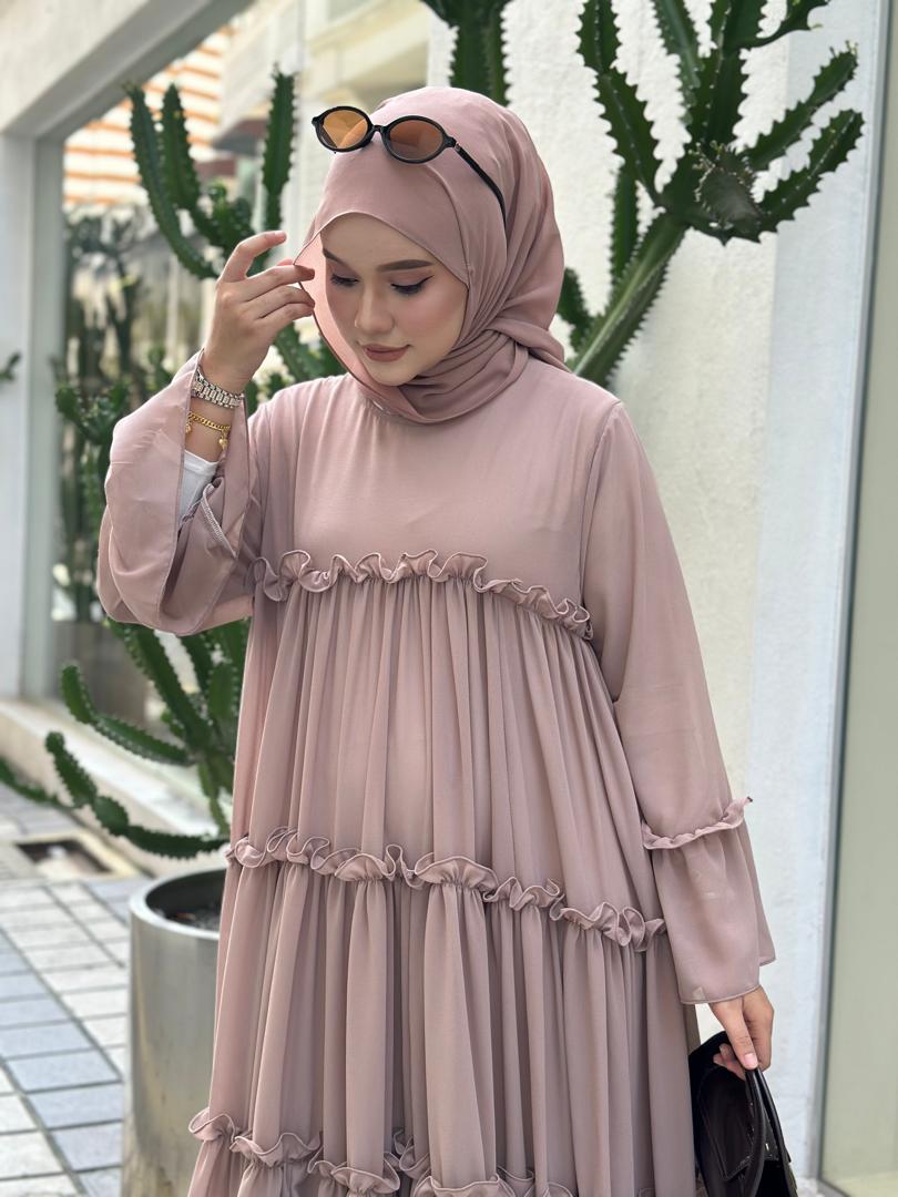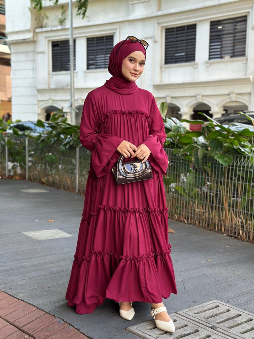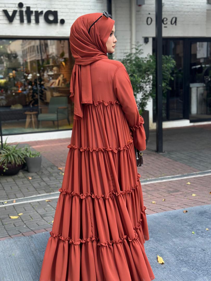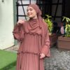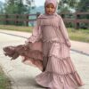 Dress Abaya Ruffle (Mom & Kids) + Shawl Set